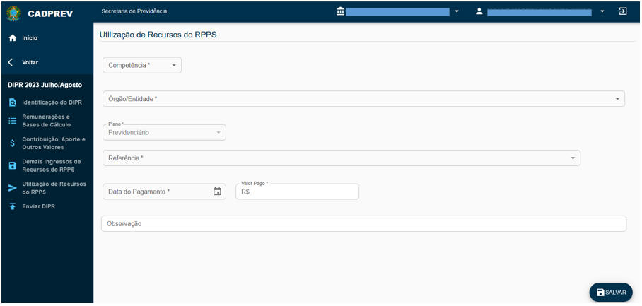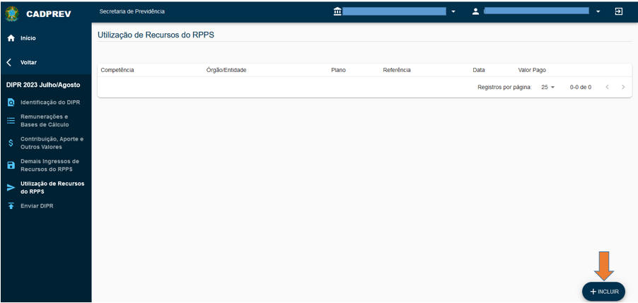 Informar os pagamentos relacionados às despesas administrativas do RPPS, na forma do contido nos artigos 81 a 84 da Portaria MTP nº 1467/2022. Recomenda-se que essas despesas sejam informadas pelo regime de caixa, de acordo com seus registros contábeis. Importante destacar que o total das despesas administrativas informadas na guia Utilização de Recursos do DIPR (Etapa 5), deverá corresponder com as despesas administrativas efetivamente contabilizadas pela Unidade Gestora do RPPS, de acordo com os seus relatórios contábeis. As despesas administrativas inscritas em Restos a Pagar, não informadas no DIPR pela fase do empenho/liquidação, deverá ser informada no ano seguinte na competência do seu efetivo pagamento. |
