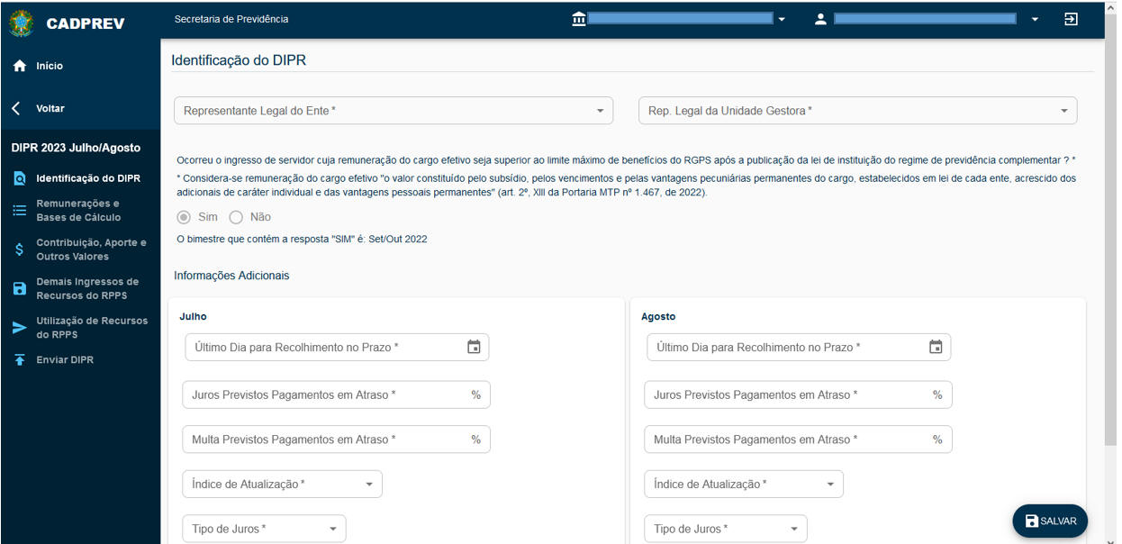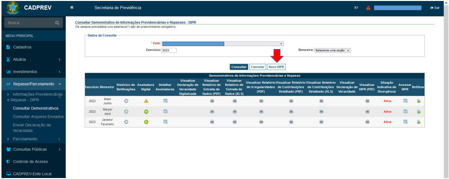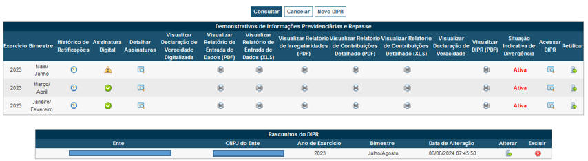 O DIPR deverá ser encaminhado até o último dia do mês seguinte ao encerramento de cada bimestre, independentemente se dia útil ou não, e deverá ser preenchido diretamente no Sistema CADPREV-Web, onde também será assinado digitalmente pelos representantes legais do ente e da unidade gestora, atestando que as informações constantes refletem a realidade e que não houve a inserção de informações falsas ou omissão de informações.