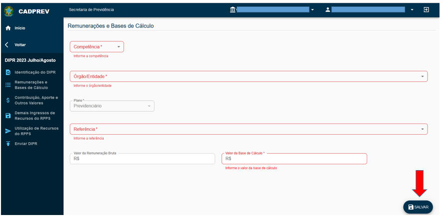 Não se justifica a existência de divergências entre os valores das bases de cálculos informadas na Etapa 2 do DIPR para as "Referências" patronais e aquelas informadas para as "Referências" relativas aos segurados, já que, em regra, as bases são as mesmas para a contribuição patronal e para a contribuição dos segurados. |
