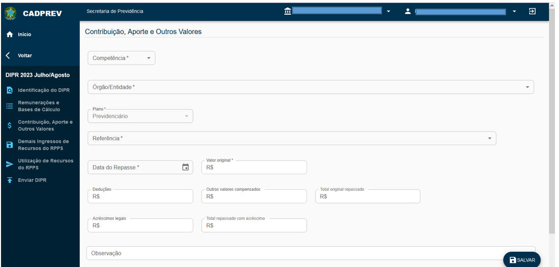 DEMONSTRATIVO DE INFORMAÇÕES PREVIDENCIÁRIAS E REPASSES - DIPR