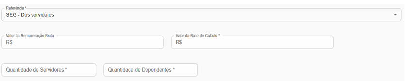 Base de cálculo da contribuição dos servidores ativos informada na guia Remunerações e Bases de Cálculo (Etapa 2), nas referências SEG, 13-SEG, UG-SEG e UG-13-SEG versus Base de cálculo da contribuição patronal informada na guia Remunerações e Bases de Cálculo (Etapa 2), nas referências PAT-SEG, 13-PAT-SEG, UG-PAT-SEG e UG-13-PAT-SEG). |