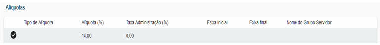 O CADPREV utilizará as alíquotas de custeio vigentes nas competências do